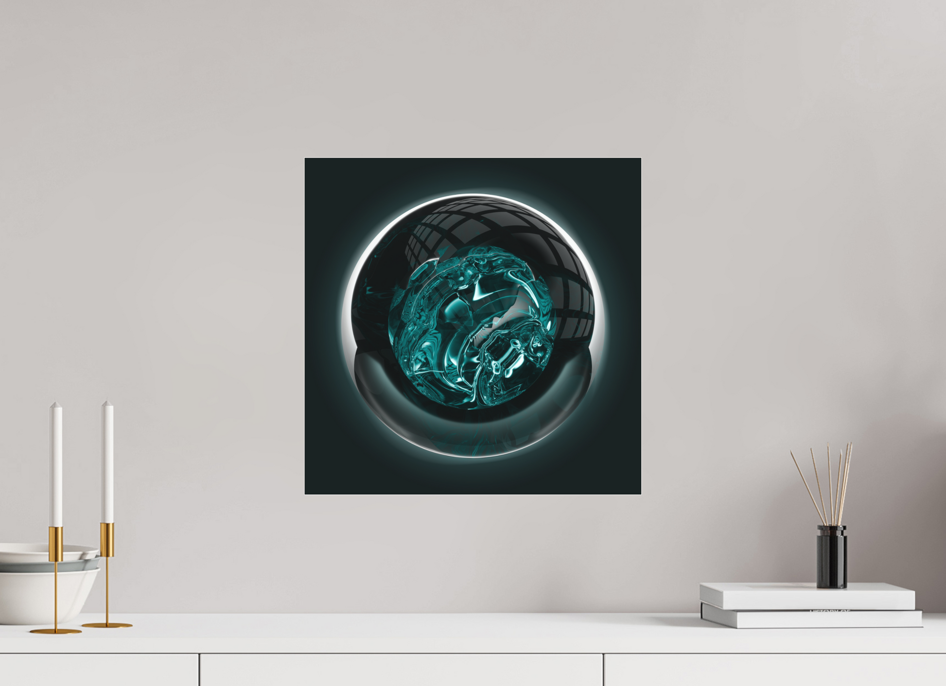 Select a concise 40 × 40 cm accent that whispers futurism, or command the room with a bold 1.8 × 1.8 m centerpiece that infuses your space with innovation and sleek refinement. Whatever the size, “Cryosphere: Cyan Nova” fascinates and inspires. Each print is produced with exacting precision to deliver an art experience that pushes the limits of imagination.